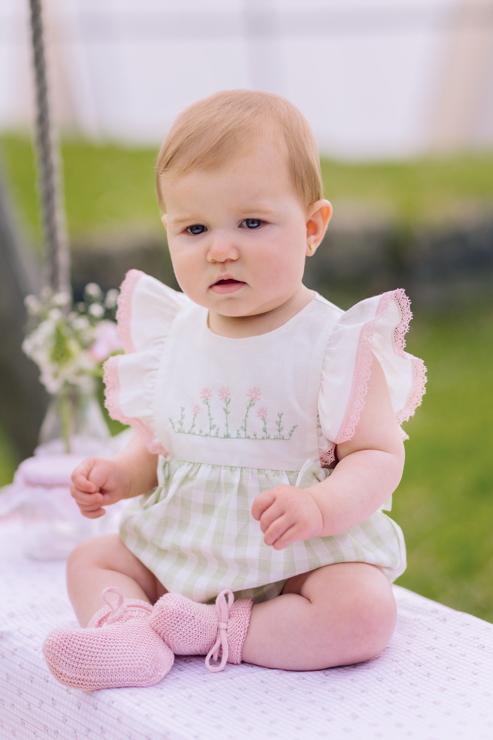 Fofo vichy verde e detalhes rosa e branco da Paz Rodriguez "Frescura"