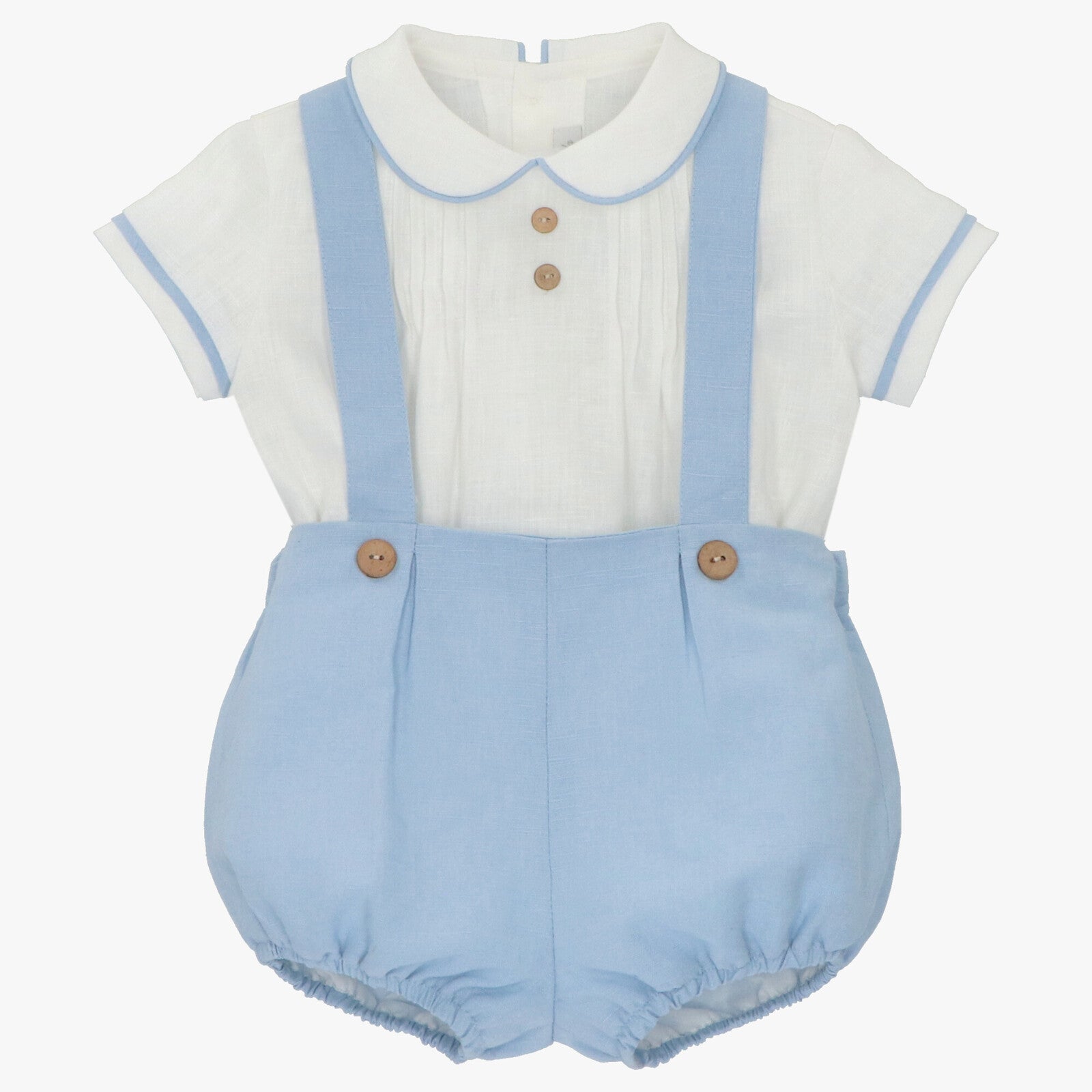 Conjunto camisa e calção azul cerimonia em linho para menino da Martin Aranda